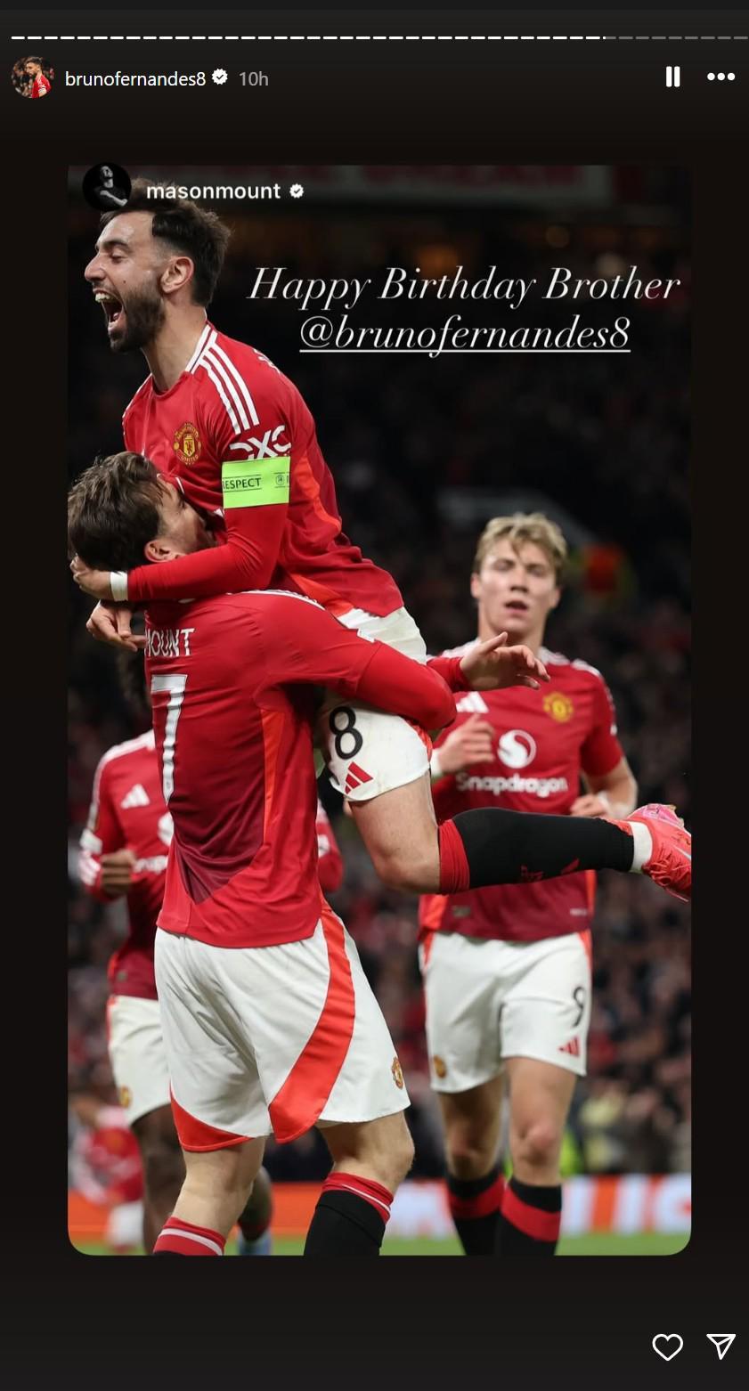 布鲁诺-费尔南德斯迎来了自己31岁的生日,曼联队友、前队友们都纷纷为他送上生日祝福,B费在个人社媒短时间内就转发了数十条动态。